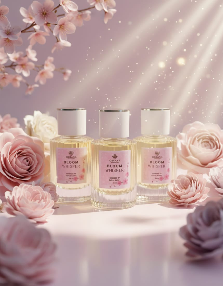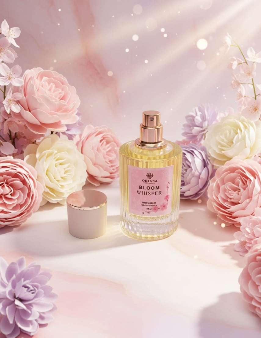 BLOOM WHISPER is a soft, romantic, and beautifully feminine fragrance. Inspired by the gentle scent of Cuttsembra, it captures the fleeting beauty of cherry blossoms in the spring. It's a light and airy aroma that whispers of love and happiness, leaving a delicate floral veil wherever you go.Best ForDay wear, summer months, and romantic outings.Key Features* Light and gentle floral fragrance. \* Pink-tinted liquid and label reflecting a sweet, fresh mood. \* Elegant, crystal-cut clear bottle.